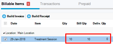 In the Delivered Qty enter the quantity which the patient received so far. For example, if this is prepayment for 10 sessions in the next month, enter as bellow: