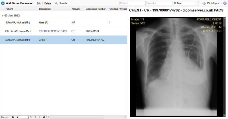 For more in depth analysis of the study, you can open it in the Dicom viewer of your choice by pressing