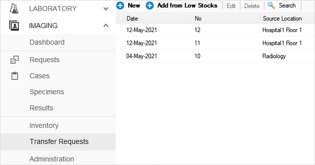 The Imaging staff can now request inventory for needed items, or for low stock items: