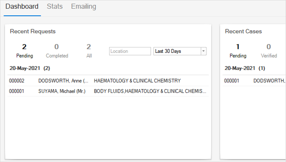 Your staff can view the recent requests and cases, on the locations the logged in user has permissions of data entry