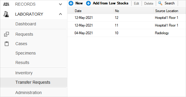 The Lab staff can now request inventory for needed items, or for low stock items: