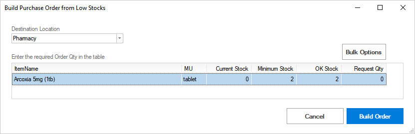 For inventory items, the orders can be generated from Low or OK Stocks:
