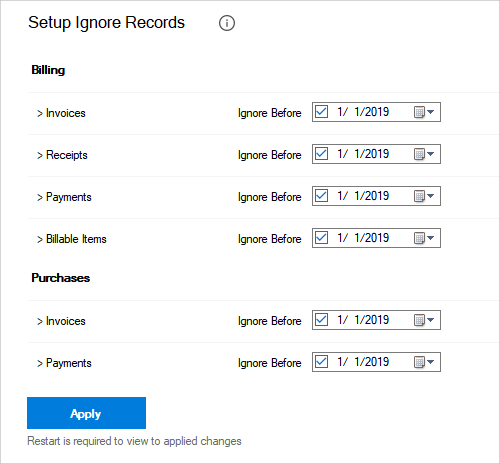 If you have years old unbalanced invoices or pending billable item, you can set up to simply do not load records before certain date
