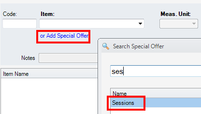 In the invoice editor press the Add Special Offer link and select the wanted offer