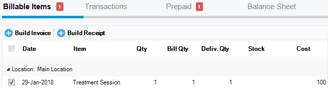 This will automatically appear under Patient Chart->Billing->Billable Items