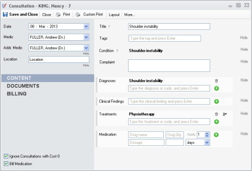 Create a new consultation like the one bellow. The steps are available in the Medical Records tutorial
