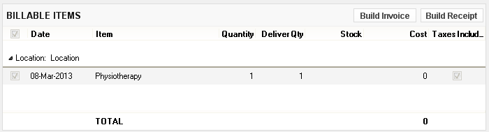 Next go to Patient Chart -> Billing for the same patient. The Billable Items panel should look like bellow: