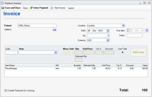 You can also modify the Quantity if you bill more items, or the Delivered Qty . If the Delivered Qty is smaller than the Quantity , and you bill with invoices, the difference quantity of items will be considered prepaid. More on the topic at Prepaid Items and Prepaid panel in Patient Chart