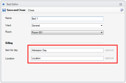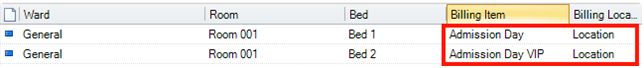 For every bed which you want to bill, you will need to associate an item and a default billing location, as bellow: