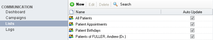 2.3. Patients - Patients of Medic - describes an Auto Update list, which includes all the patients owned by a medic ( patients that have the medic set in the Patient Editor )