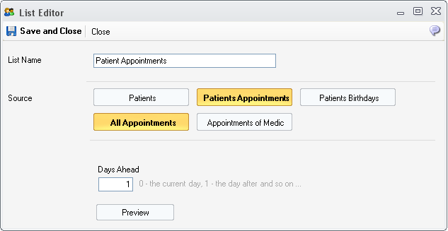 2.4. Patients Appointments - All Appointments - all the patients appointments on a certain day - specified by the Days Ahead. For example to send an email to all the patients that have appointment today, Days Ahead has to be set to 0. For the patients having appointments tomorrow, Days Ahead has to be set 1, and so on