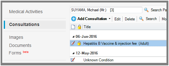 Each medic can lock owned consultations, so they cannot be edited or deleted as bellow: