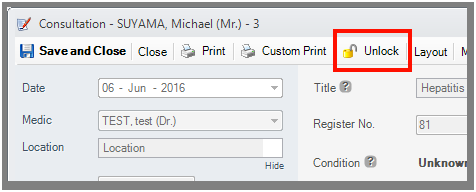 Locked consultations can be Unlocked by users with permissions to unlock ( by default Administrators and Managers):