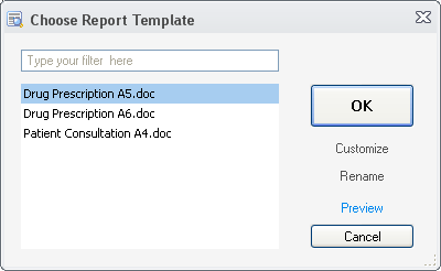 3. In the Template Selector select the template you want to use and press OK. Word will open with your consultation in the template's format. You can print or save the file.