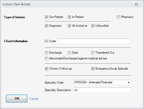 2. A window like the one bellow will open and prompt the entry of the custom fields for the claim