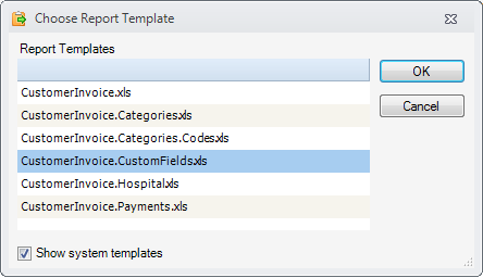 3.Select the wanted custom claim template, and press OK. For testing use the CustomerInvoice.CustomFields.xls template