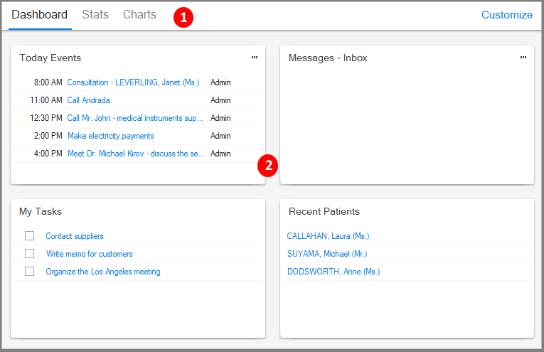 To add tabs to the dashboard, press Customize->Manage Tabs->Add Tab