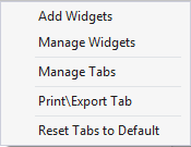 To add new widgets to a tab, simply press Customize->Add Widgets and check the widgets you want to add: