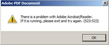 There is a problem with Adobe Acrobat/Reader. If it is running, please exit and try again (523:523)