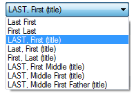 This is the default format that applies to any new contact, patient, medic in the system. You an chose from the available name formats: