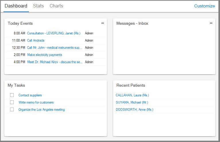 - Is a quick summary of the number of patients that visited the clinic or the logged in medic
