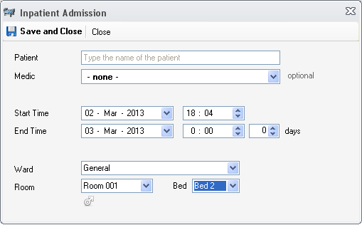 3. Start Time and End Time - the duration of the admission. You can click on the days field to easily modify the End Time