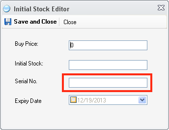 Set Serial Number in Initial Stock