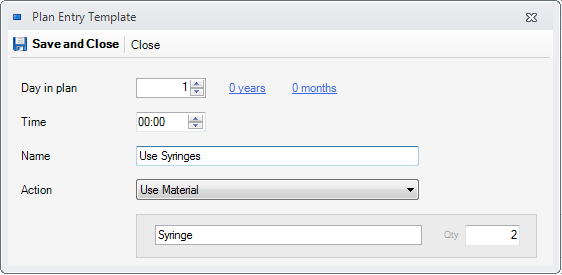 You can also integrate the used material as workflow action in Treatment Plans by defining treatment plan templates with the Use Material action: