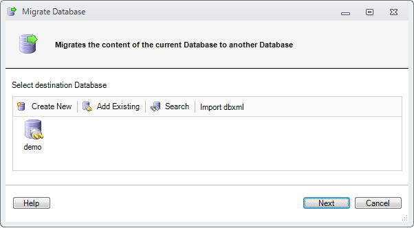 This command will move all the content from the current database into another database. Note, the destination database will be completely cleared before this operation