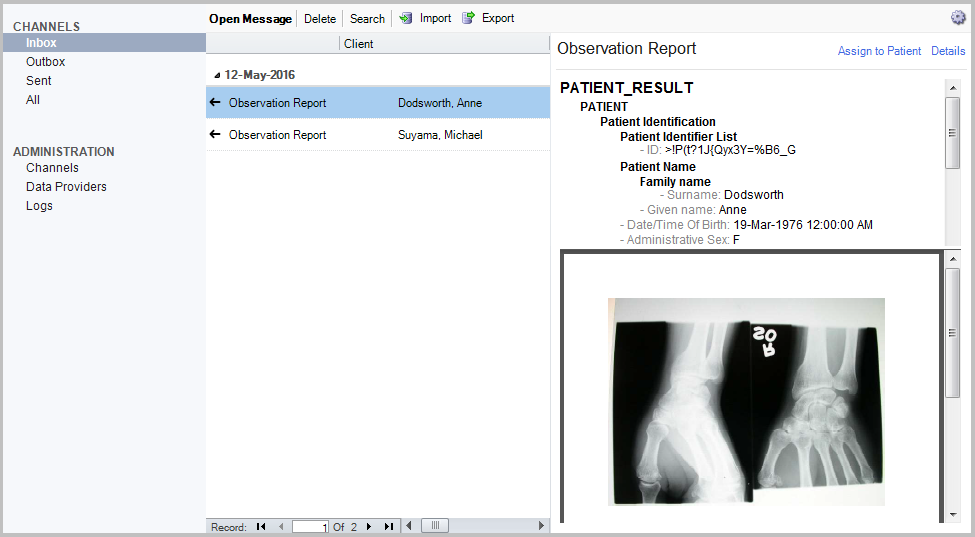 The Channels module is a bi-directional system for sending and receiving Health-care Messages from other medical systems or medical devices: