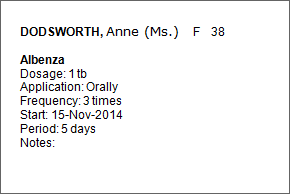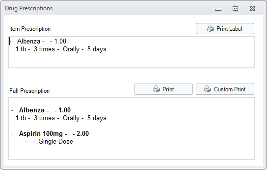The window bellow will open where you can choose to print the full prescription or just a drug label to be sticked on the drug's box.