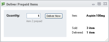 In the Quantity field enter the quantity to deliver and press the Deliver Now button. The entered quantity will be removed from stock.