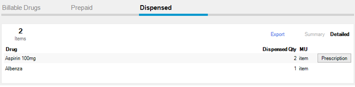 To export the list of dispensed drugs, press the Export link