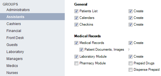 1. Select the group in the left list. On the right panel will appear all the appear all the available User Interface permissions. Those that are allowed are checked