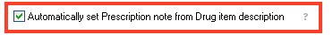 To have the drug's prescription note automatically set from the item description, go to Administration->Settings and set flag bellow: