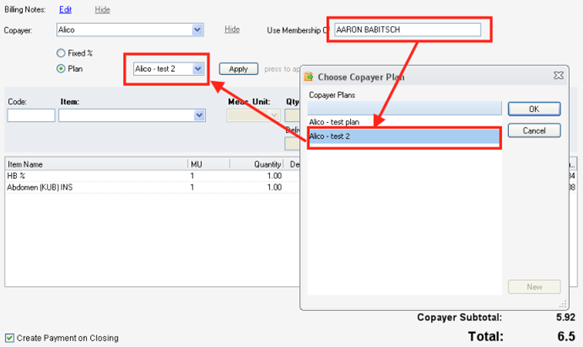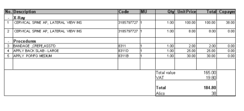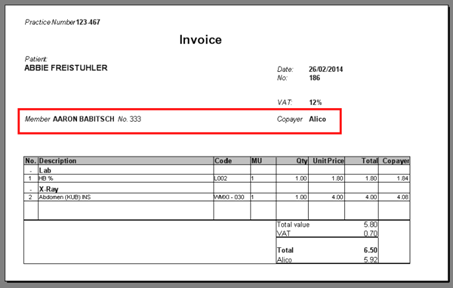The printable invoice will containt besides the Patient, the copayer’s Member and Member No: