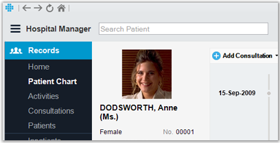 The timeline is available as entry in the Patient Chart and gives you a clear view of the patient's records. You can add, edit or delete all records from here