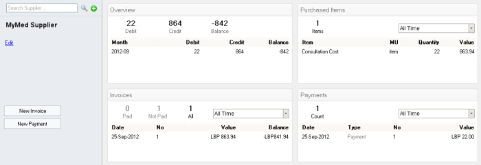 1.3. Allows the entering or a new Invoice, Payment for this supplier