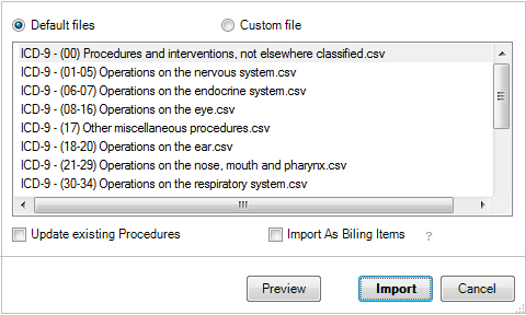 3. Click the Import button. The procedure codes from the file are imported to the database. Note that the process might take time to complete.