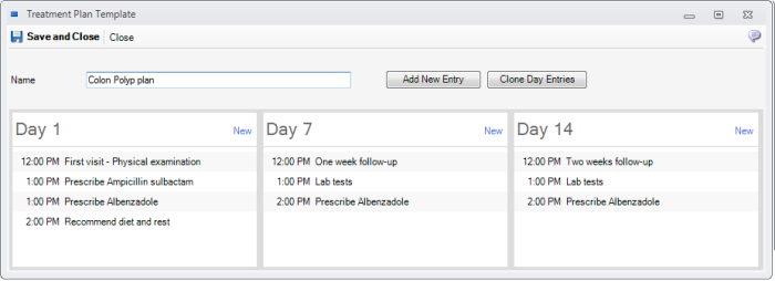2. Use the Add New Entry and Clone Day Entries to enter a new entries in the required day of treatment