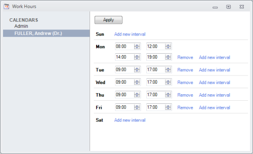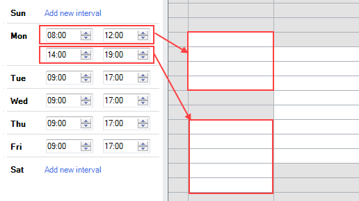 3. Enter the start and the end hours . For more work intervals press the Add new interval link
